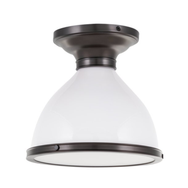 We marry functionality and refinement in the Randolph collection. Rather than a metal shade to meet the down-lighting requirements of a factory floor, we’ve outfitted Randolph with a glossy dome of opal glass to deliver bright task lighting beneath the fixture and warm ambient light throughout the room.