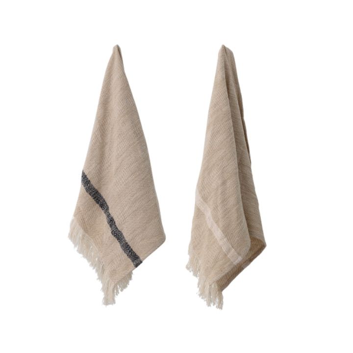 These tea towels are the perfect items for any style of kitchen. They are beautiful neutral colors to match any type of decor, and have unique fringe detailing for an extra flair. They are perfect for cleaning up messes, or simply just for decoration. They come in a set of 2.