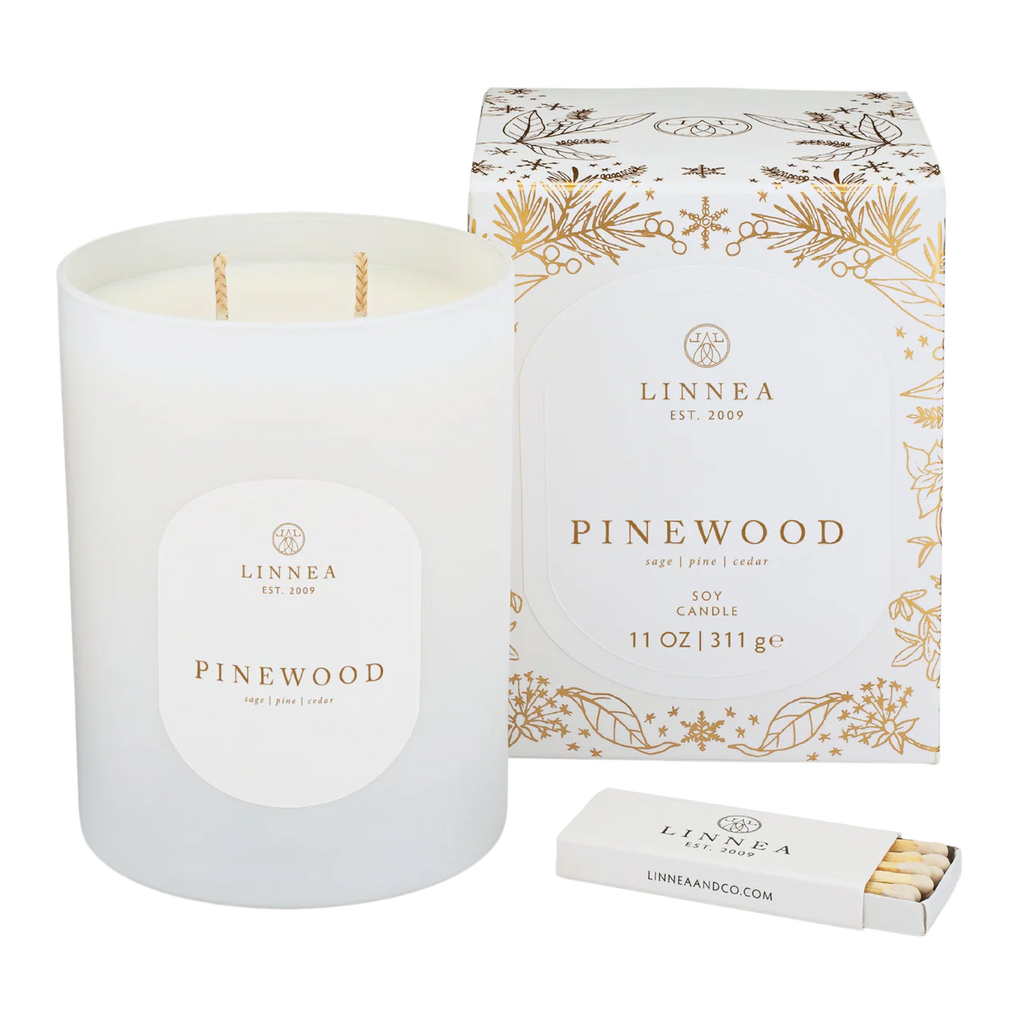 New and limited for Winter. A refined blend of sage, pine, and cedar evokes the quietude of a forest cabin, wool blankets by the hearth, and the hush of falling snow. Poured in alabaster glass with a double wick, Pinewood offers a serene, woodsy warmth for the season’s stillest moments.