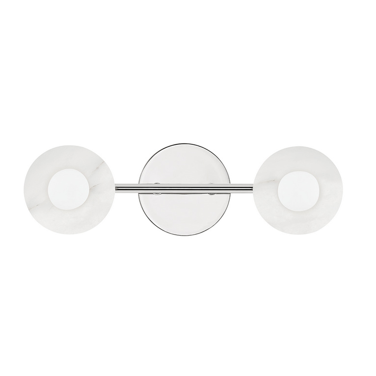 A bath bar that introduces serious elegance into a simple design by setting alabaster discs as foils against each diffuser, Elmont accents of stone infuse drama into the bath.