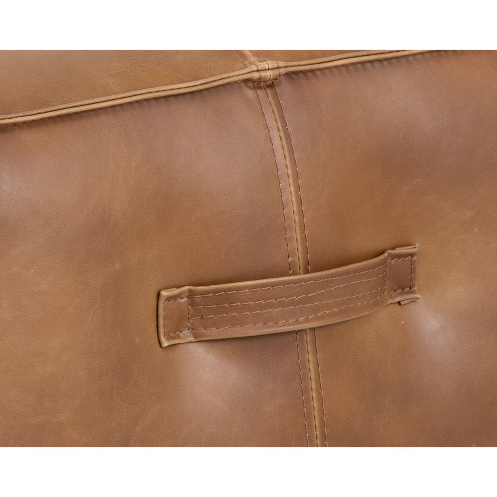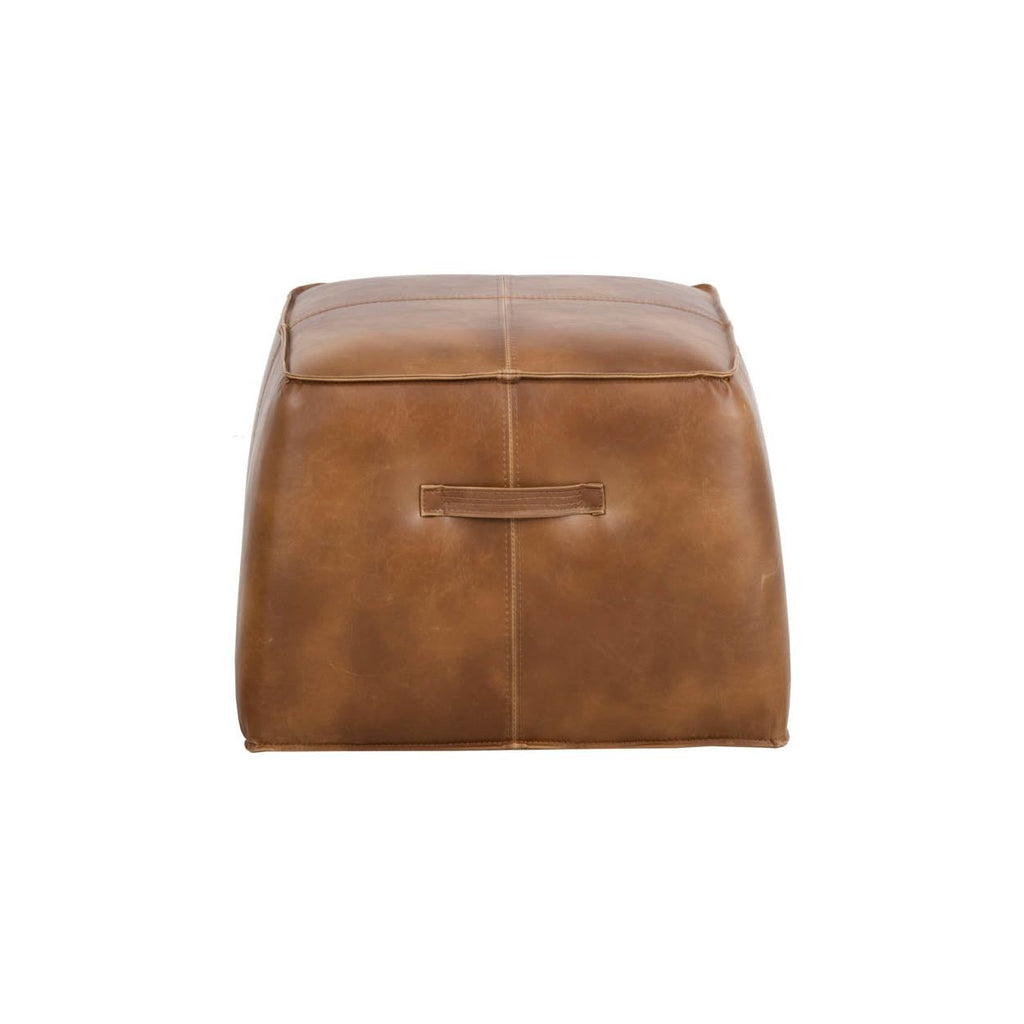 A handsome cubed ottoman stocked in a vintage-look Havana dark brown and tobacco tan faux leather. Features a decorative handle and exposed stitching for added dimension. Suitable for residential and commercial environments. Handle With Care: This design has been crafted with faux leather. Faux leather is manufactured to reflect the natural characteristics of leather; as such, colour variations, markings wrinkles, grooves, and light scratches are appreciated characteristics. No two pieces will be alike.