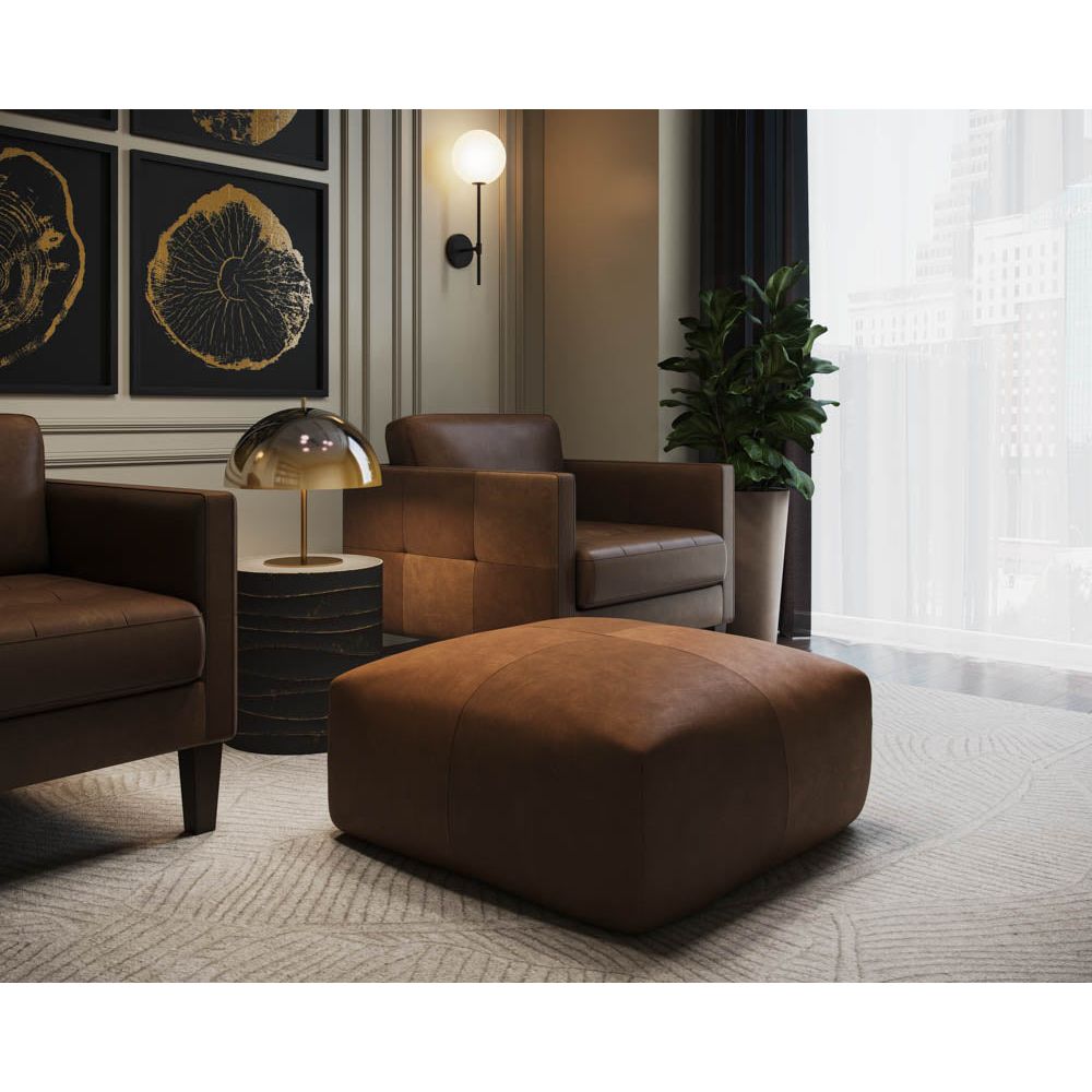 Elsie Ottoman-Cognac Leather