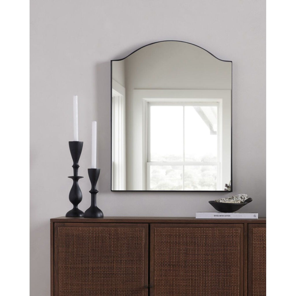 A thin, streamlined frame keeps the focus on the reflection in this classic-shaped mirror.