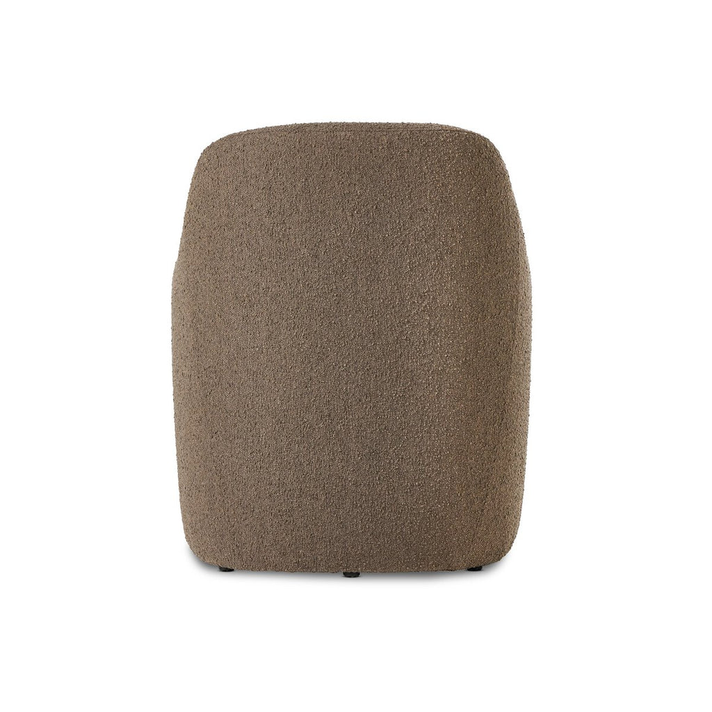 This soft, modern dining chair features sculpted curves and tailored upholstery. Textural bouclé performance fabric is specially created to withstand spills, stains, high traffic and wear, ensuring long-term comfort and unmatched durability.