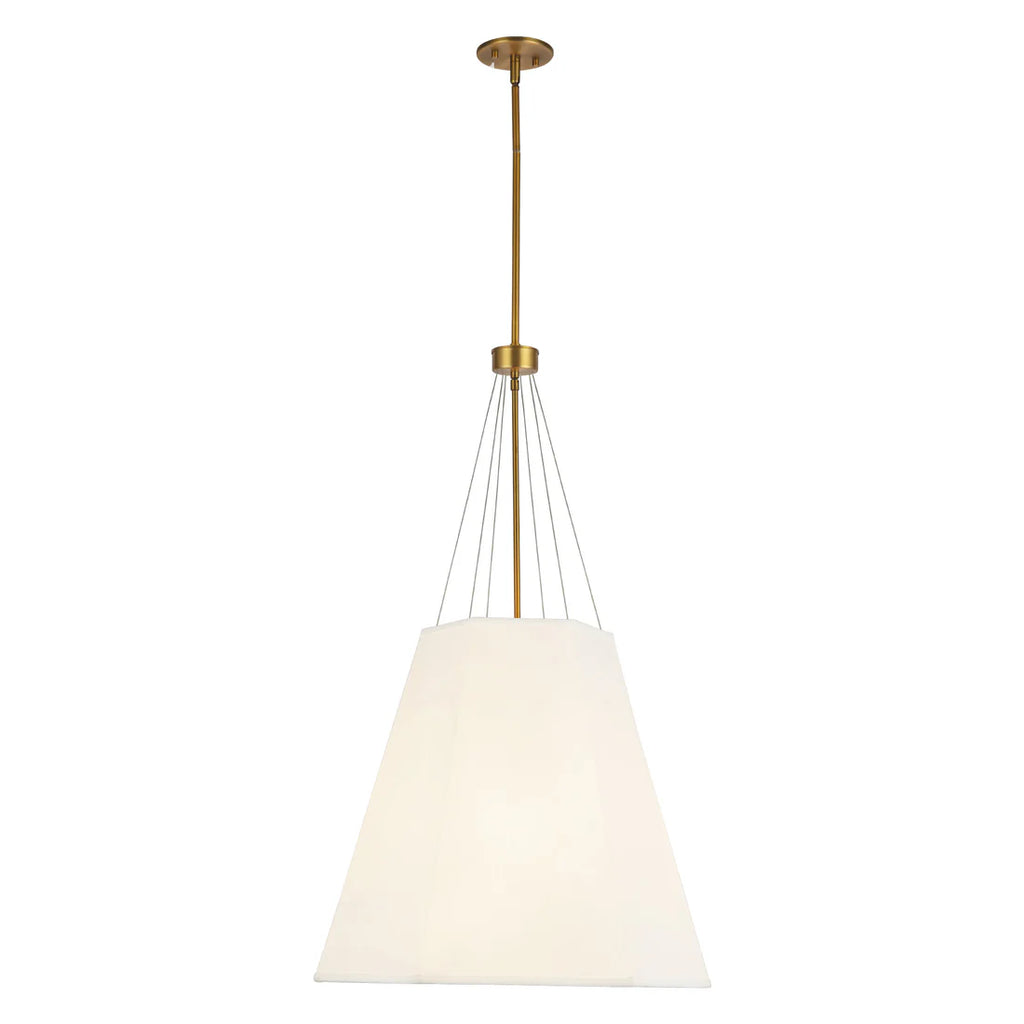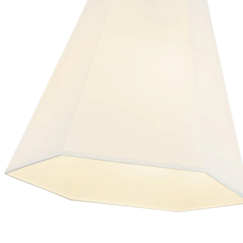 Manila is a geometric art piece. With minimal elements colliding to create a sculptural shade, this piece is neutral yet artful. With a large, minimalist white linen shade, this collection is sure to fit any home's mood with ease.