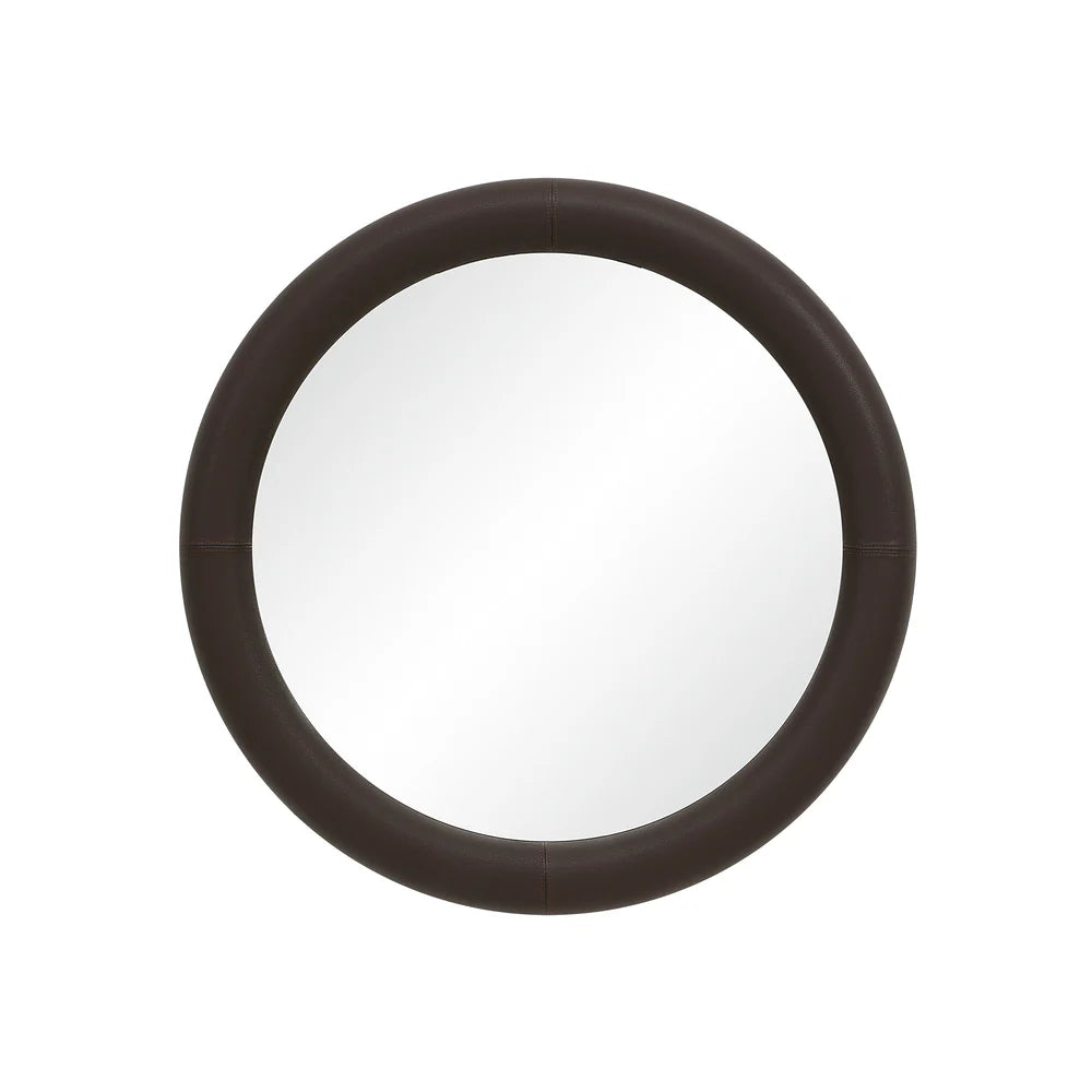 Bring elevated sophistication to any interior with the Porto decorative mirror. Its generous four-foot diameter and deep brown finish create an impressive focal point that instantly defines a room’s aesthetic. Wrapped in luxurious faux leather and paired with copper-free silvered glass, it offers a crisp, true reflection while adding a bold, contemporary statement to your design project.