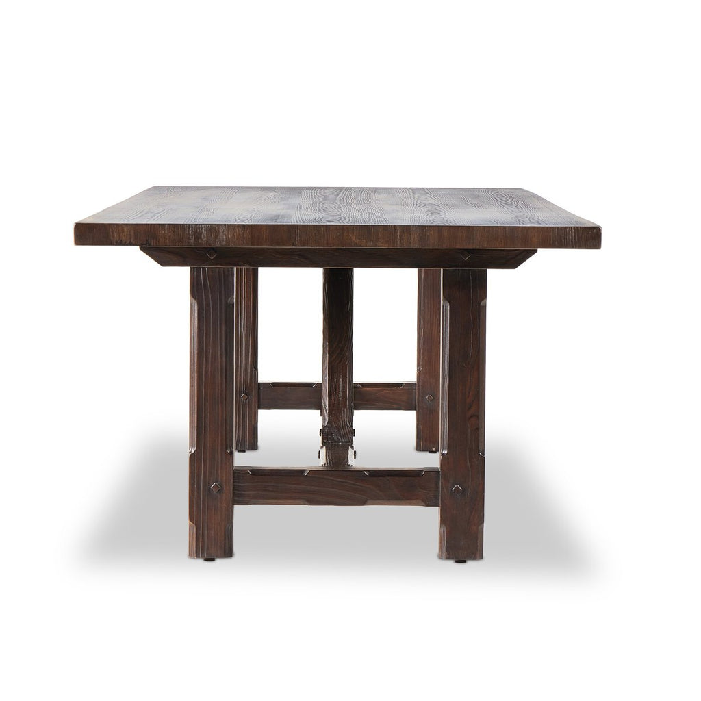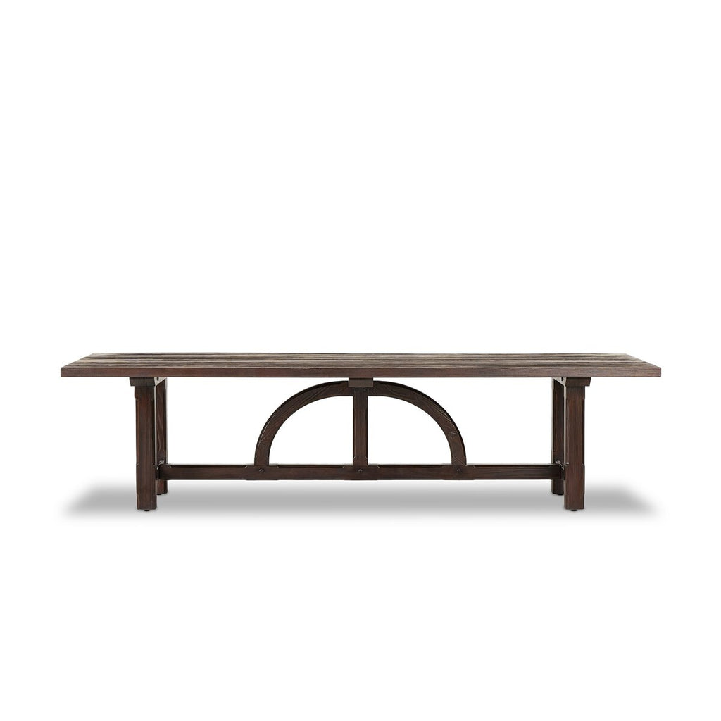 Dark brown-finished pine shapes a beautifully arched harvest table. Seats 12.
